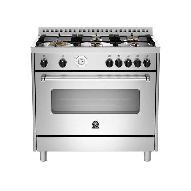 Models comprise free-standing cookers with electric ovens and gas worktops with 5 brass burners. The 142 litre twin-fan oven has an impressively fast pre-heat time of 7 minutes to 180 degrees celsius.